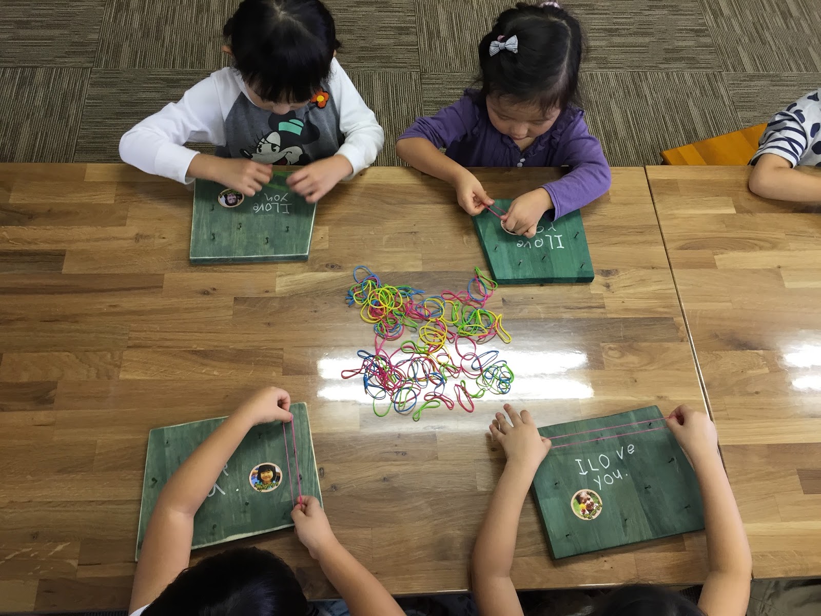そして、お教室に戻って輪ゴムでデザインします。