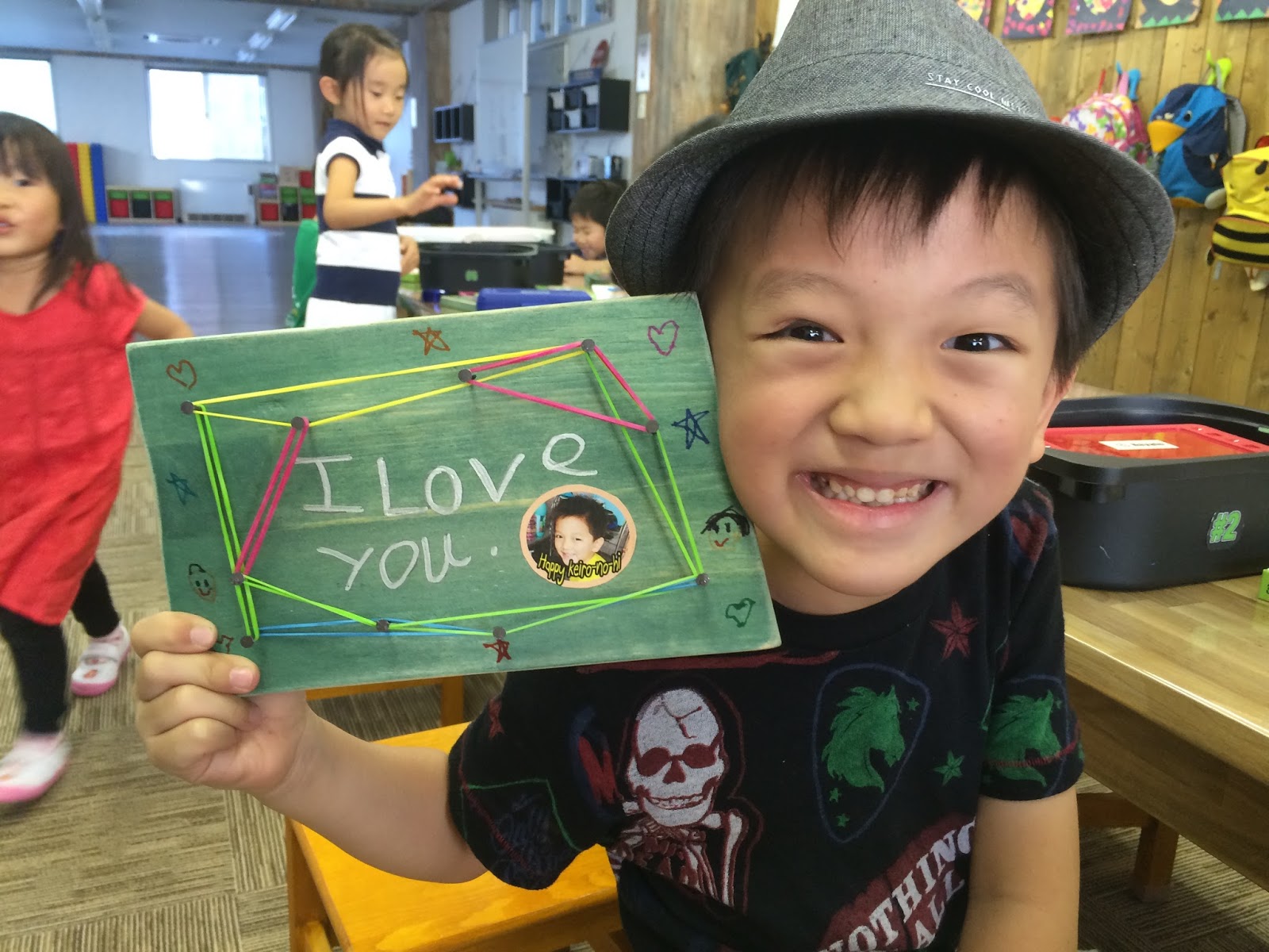 連休前、Kinderでは、敬老の日のプレゼントを作りました。