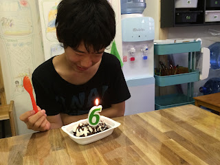 R-kun is now in the 6th grade, and has turned out to be a great kid with excellent manners. His attitude has improved a lot!! He was the only student ever to have his party cancelled and, actually, I felt sad for him all of these years… So, he finally got his cake!